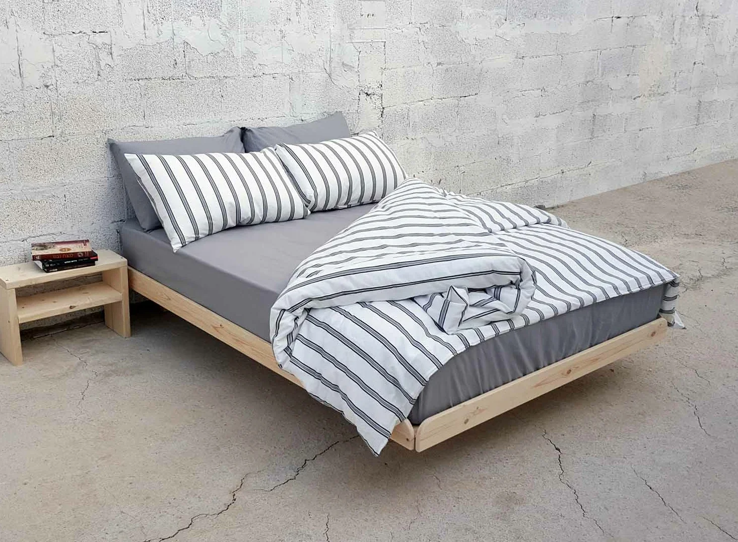מיטה יהודית עם מסגרת ומשענת גב נמוכה מעץ טבעי